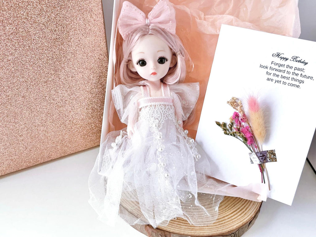 Luxury Handmade Personalised Dried Flower Birthday Card and Doll Keychain G005