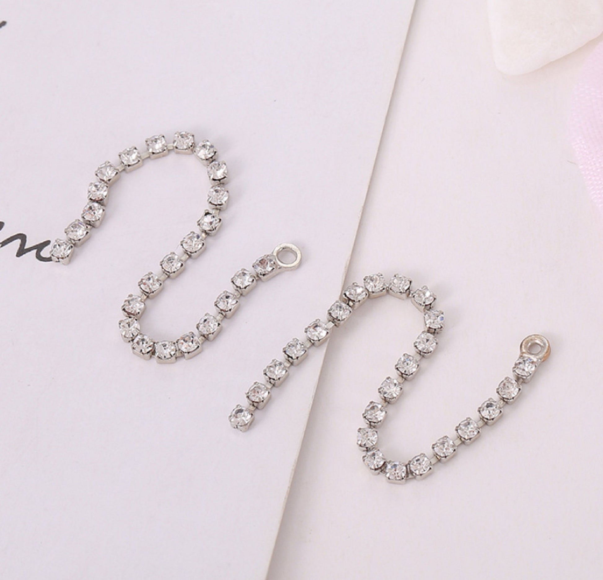 Introducing our 10 pcs Crystal Earrings Connector Embellishments. These elegant pieces are designed to add a touch of glamour to your earrings. With their stunning crystal details, they are perfect for any occasion and will surely elevate your style. Upgrade your jewelry collection with these statement pieces.