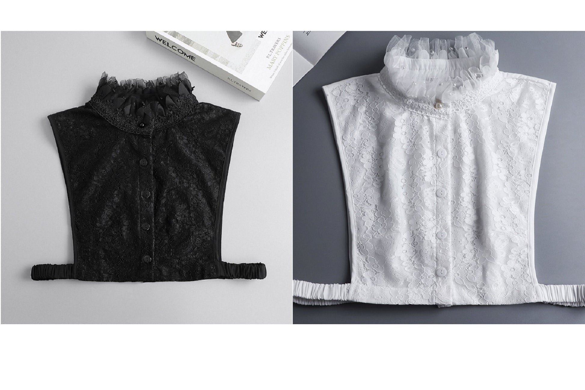 Off White, Black / Fake Collar, False Collar, Removable Collar B16(K) / SC059