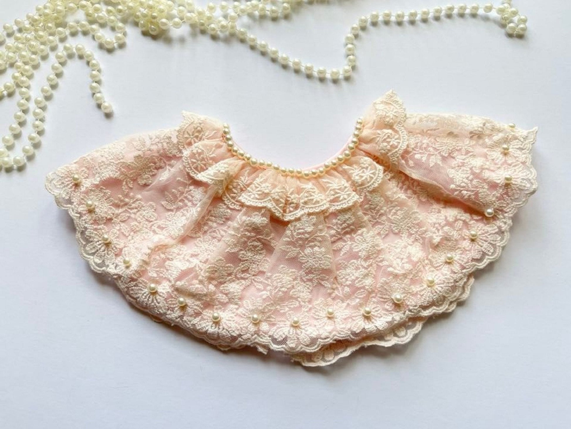 This lovely handmade lace baby bib is unique design for newborn baby, baby girls, flower girls, baptism, christening, etc.