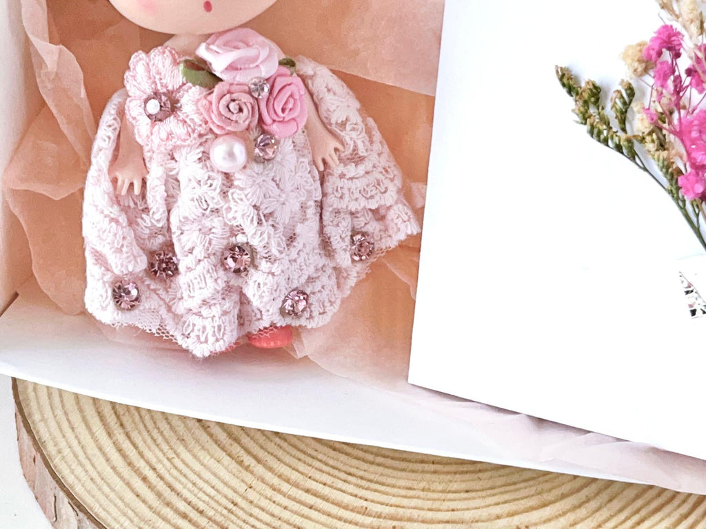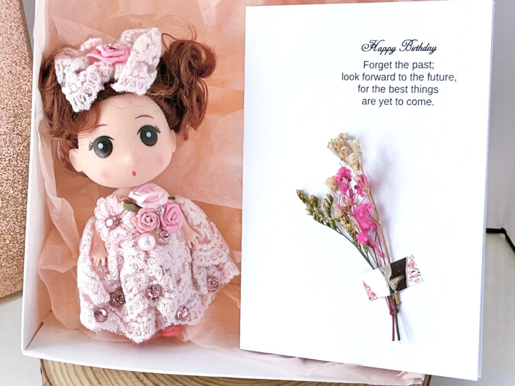 Luxury Handmade Personalised Dried Flower Birthday Card and Doll Keychain G004