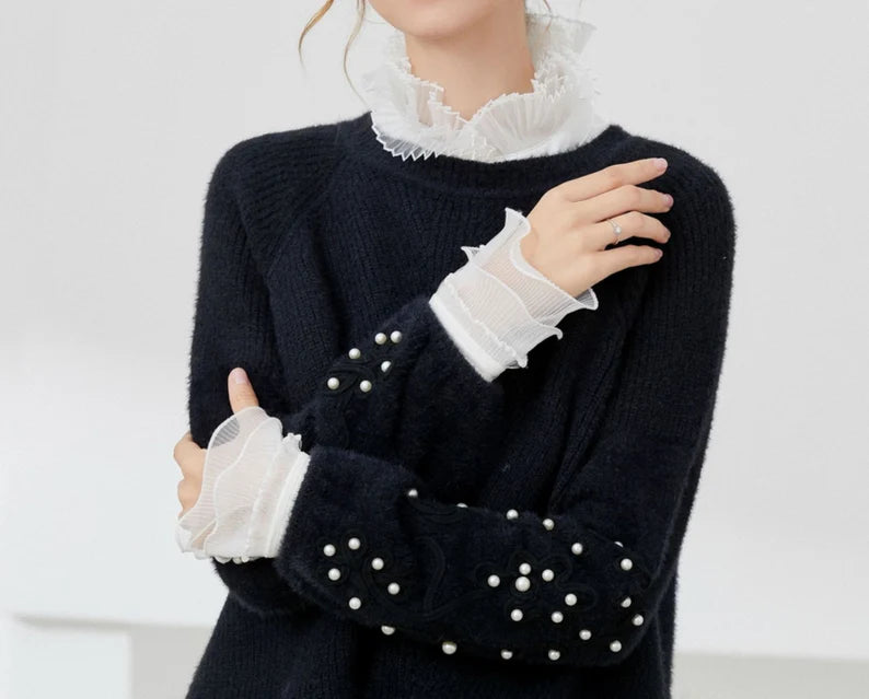 Upgrade your wardrobe with our versatile 1 pair/Off White/Fake Lace Sleeve Cuffs. Add a touch of elegance to any outfit with these lightweight, removable cuffs. Enjoy the convenience of false wrist cuffs without sacrificing style. Elevate your look effortlessly with SC624(K).