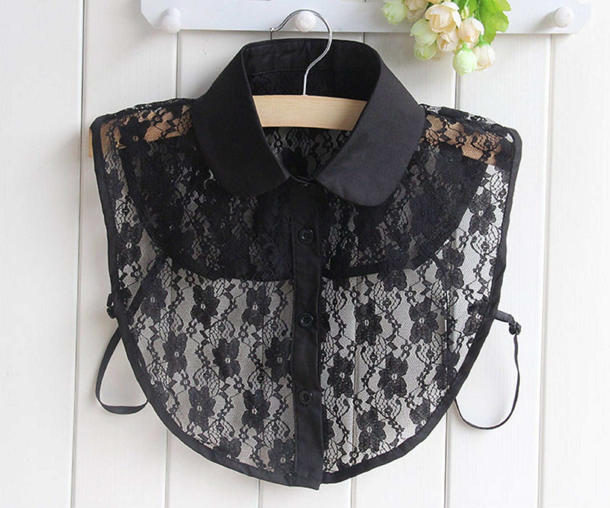 Enhance your wardrobe with our Off White, Black / Fake Lace Collar B1(E). Made with high-quality materials, this versatile accessory adds a touch of elegance to any outfit. The intricate lace design creates a delicate and feminine look, perfect for both formal and casual occasions. Elevate your style with this must-have piece.