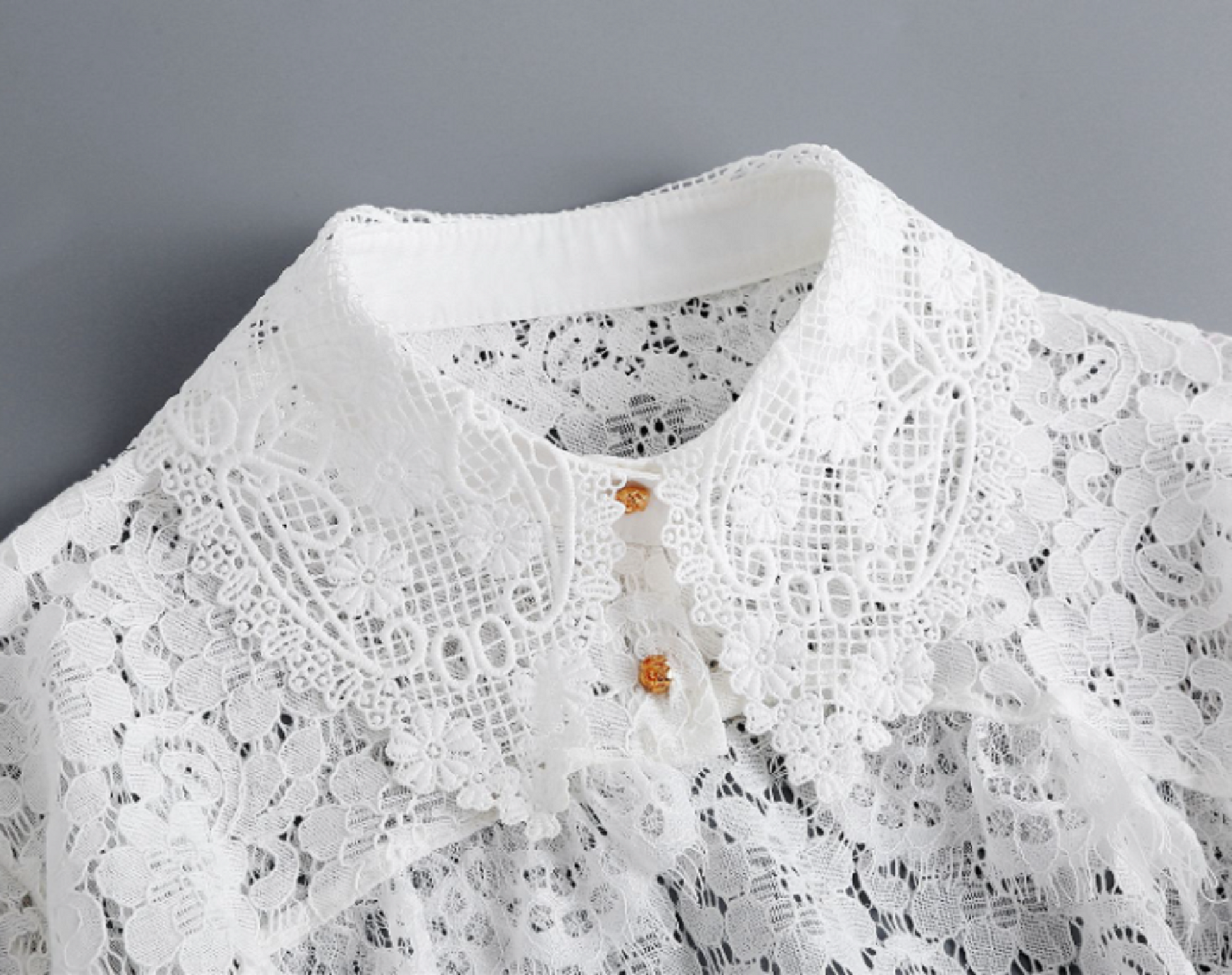 Increase the versatility of your wardrobe with our Off White Lace Fake Collar. Expertly crafted from high quality lace, this detachable collar adds a touch of elegance and femininity to any outfit. Perfect for dressing up plain tops or adding a feminine twist to blazers. Made from 100% cotton for a comfortable fit.