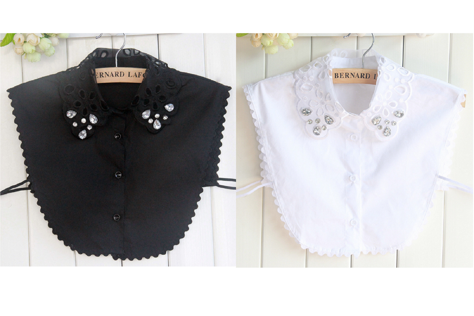 Pure White, Black / Rhinestone Fake Collar, False Collar, Removable Collar B120(E)