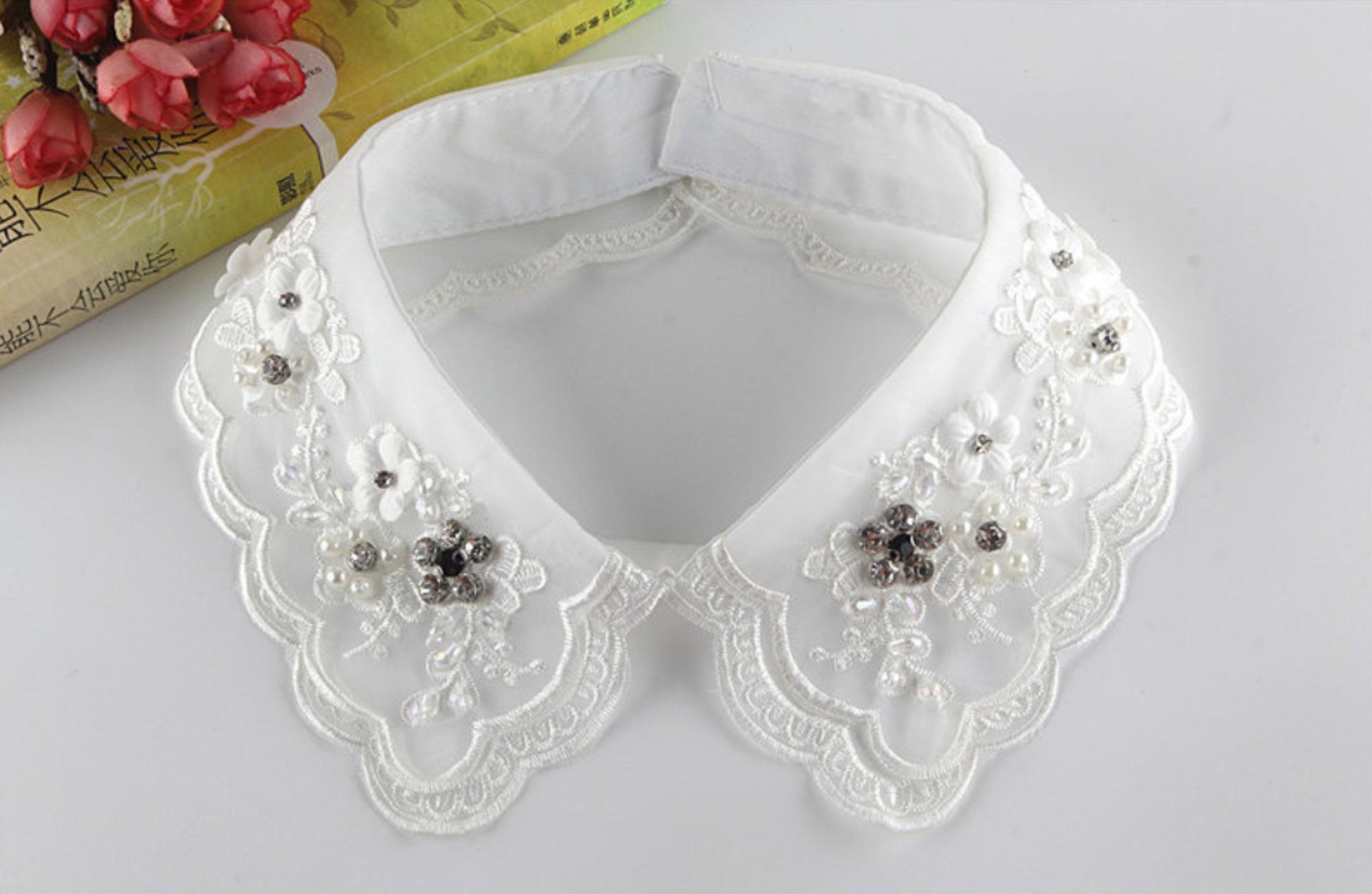 Off White, Black / Fake Crystal Lace Collar B626(K-small)