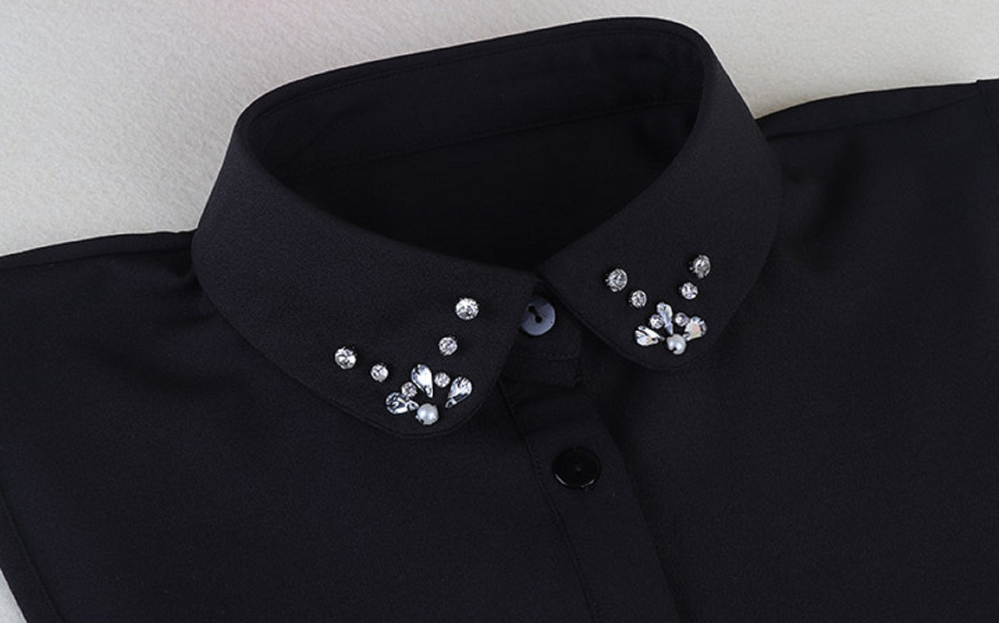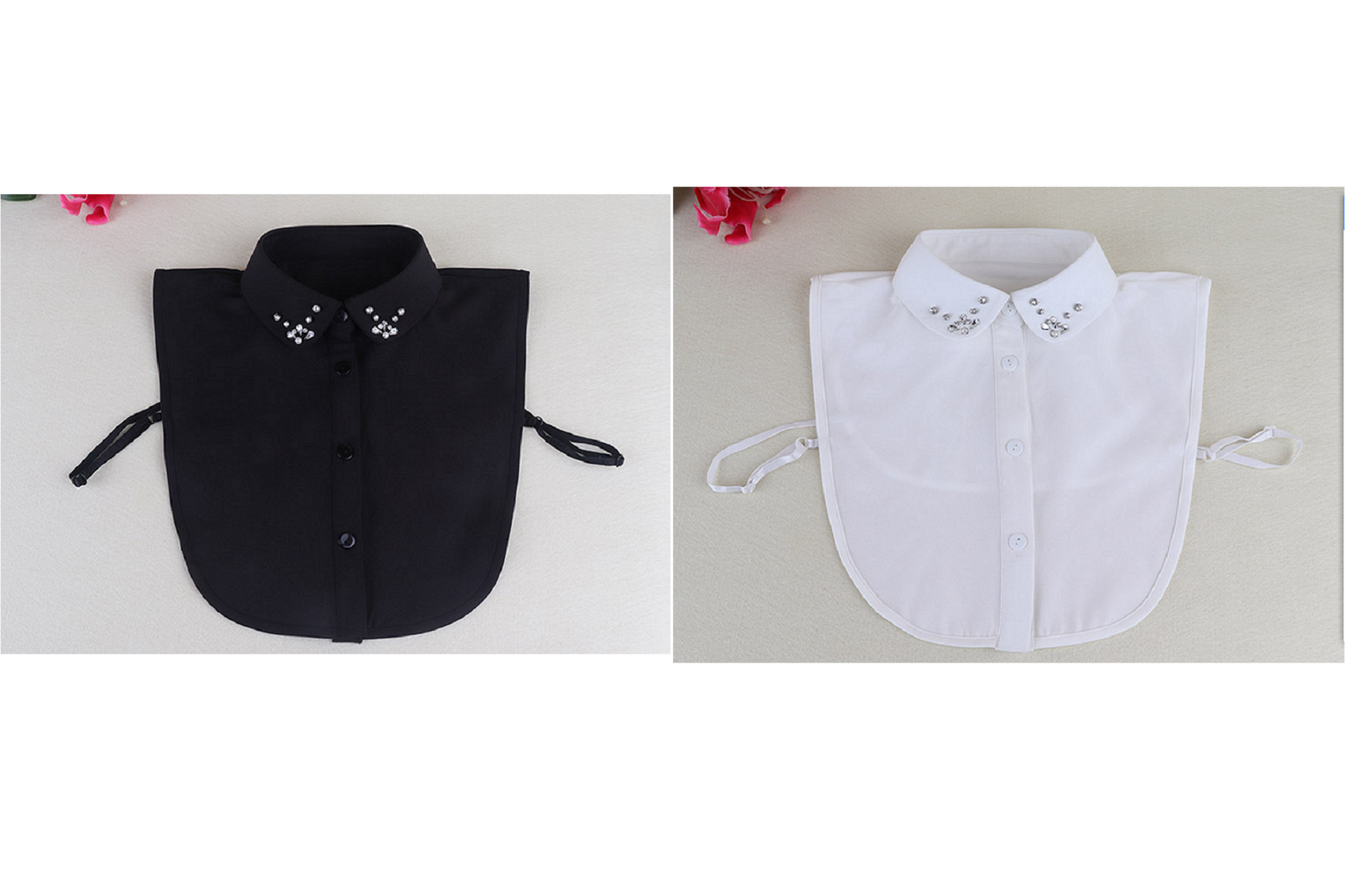 Off White, Black Rhinestone Fake Collar, False Collar, Removable Collar B831(K)