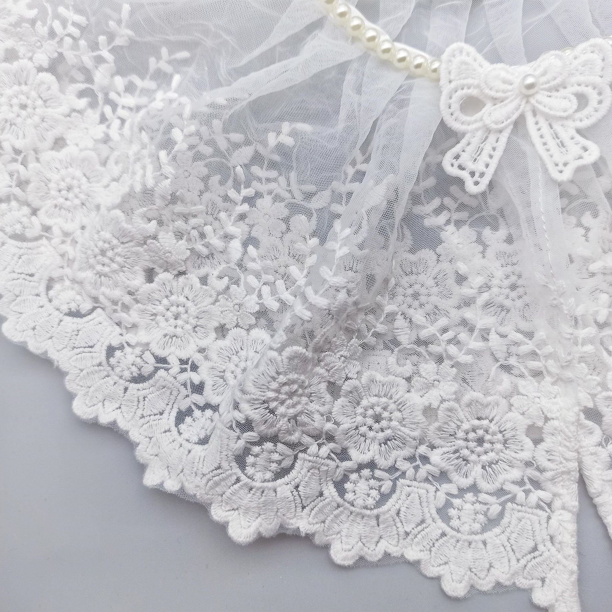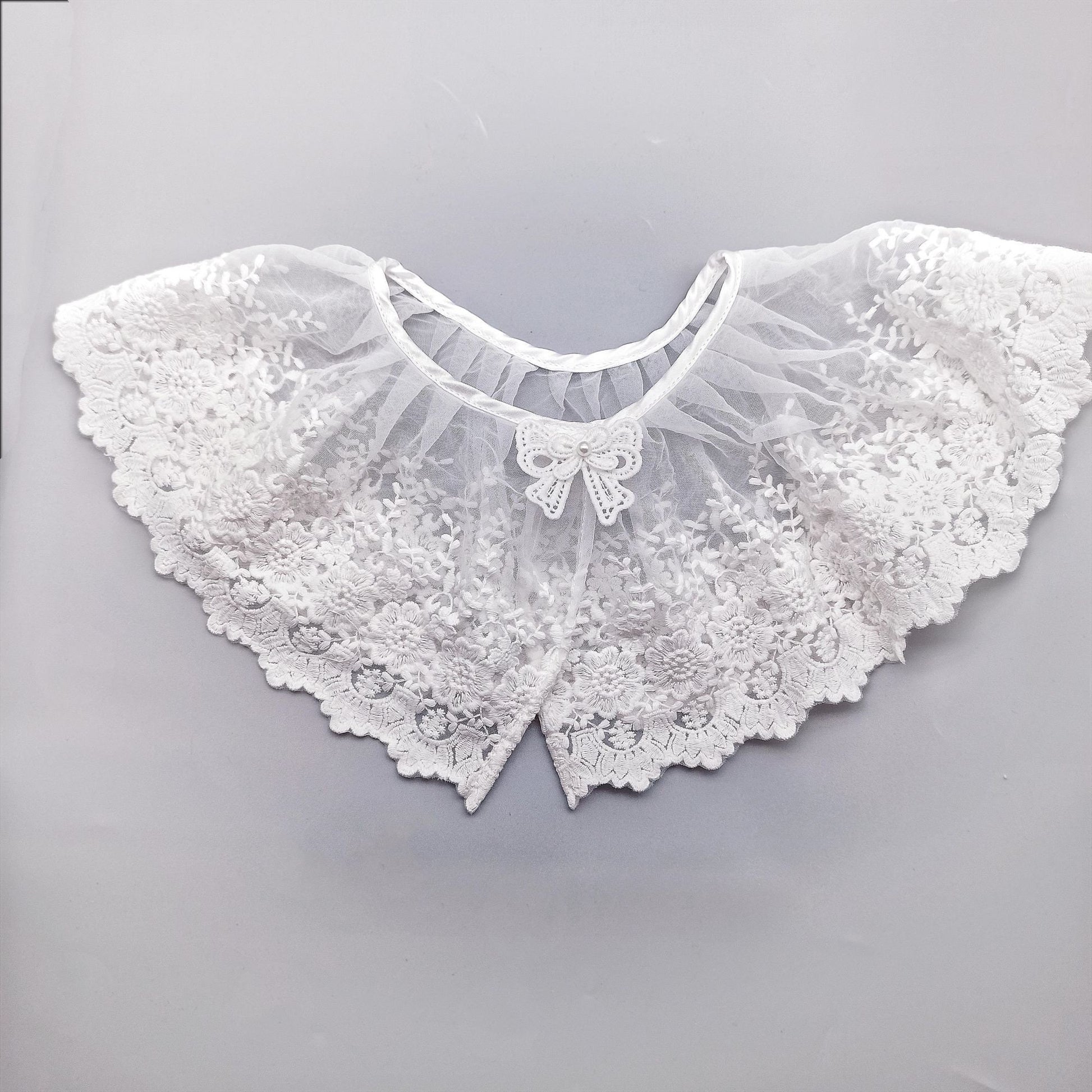 This lovely lace collar is our unique design. It is made with pearl beads and beautiful lace or without pearl beads. This is an elegant fake collar to beauty your jumper. Collar is adjustable with magic tapes. It is flexible to fit your need.
